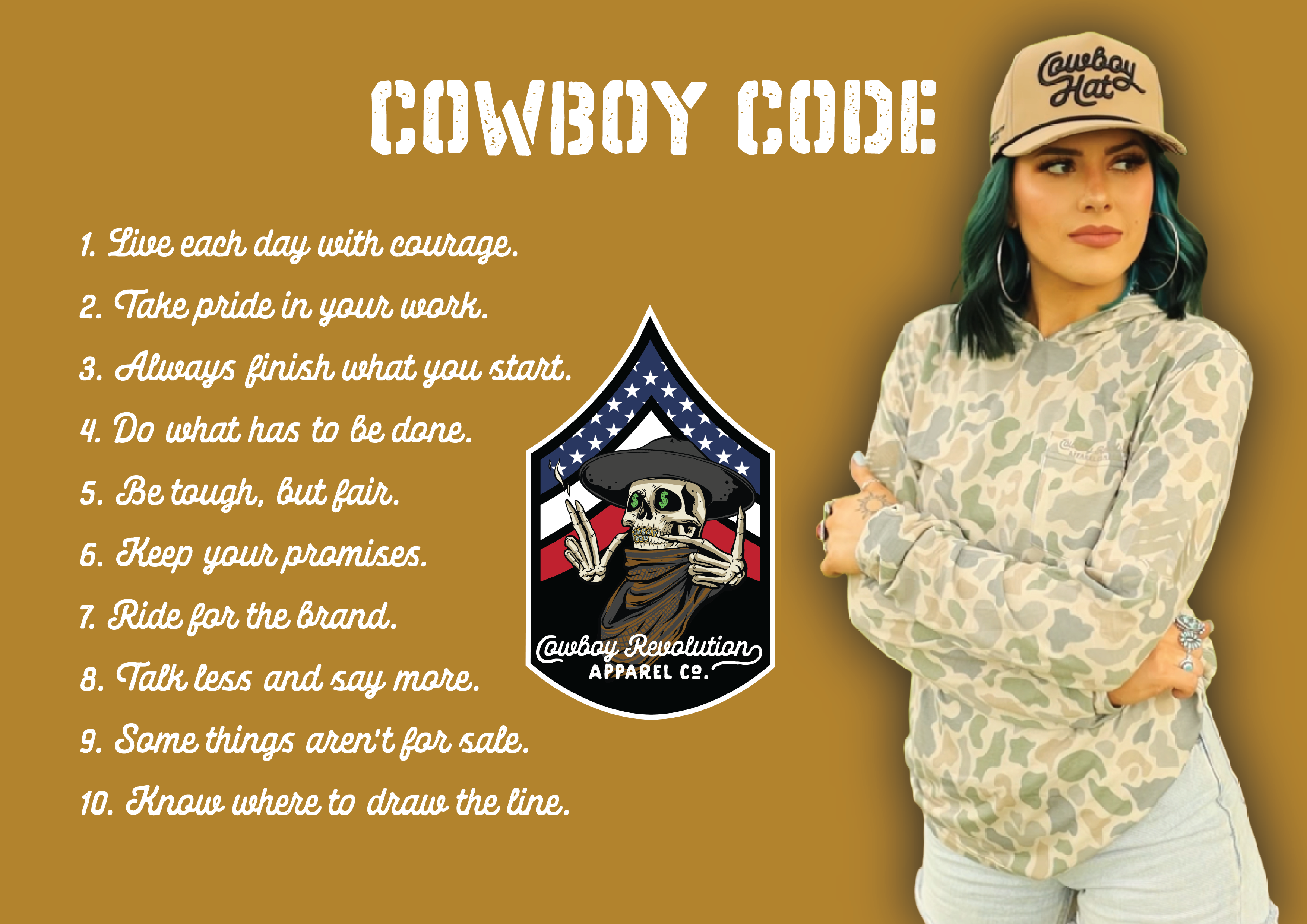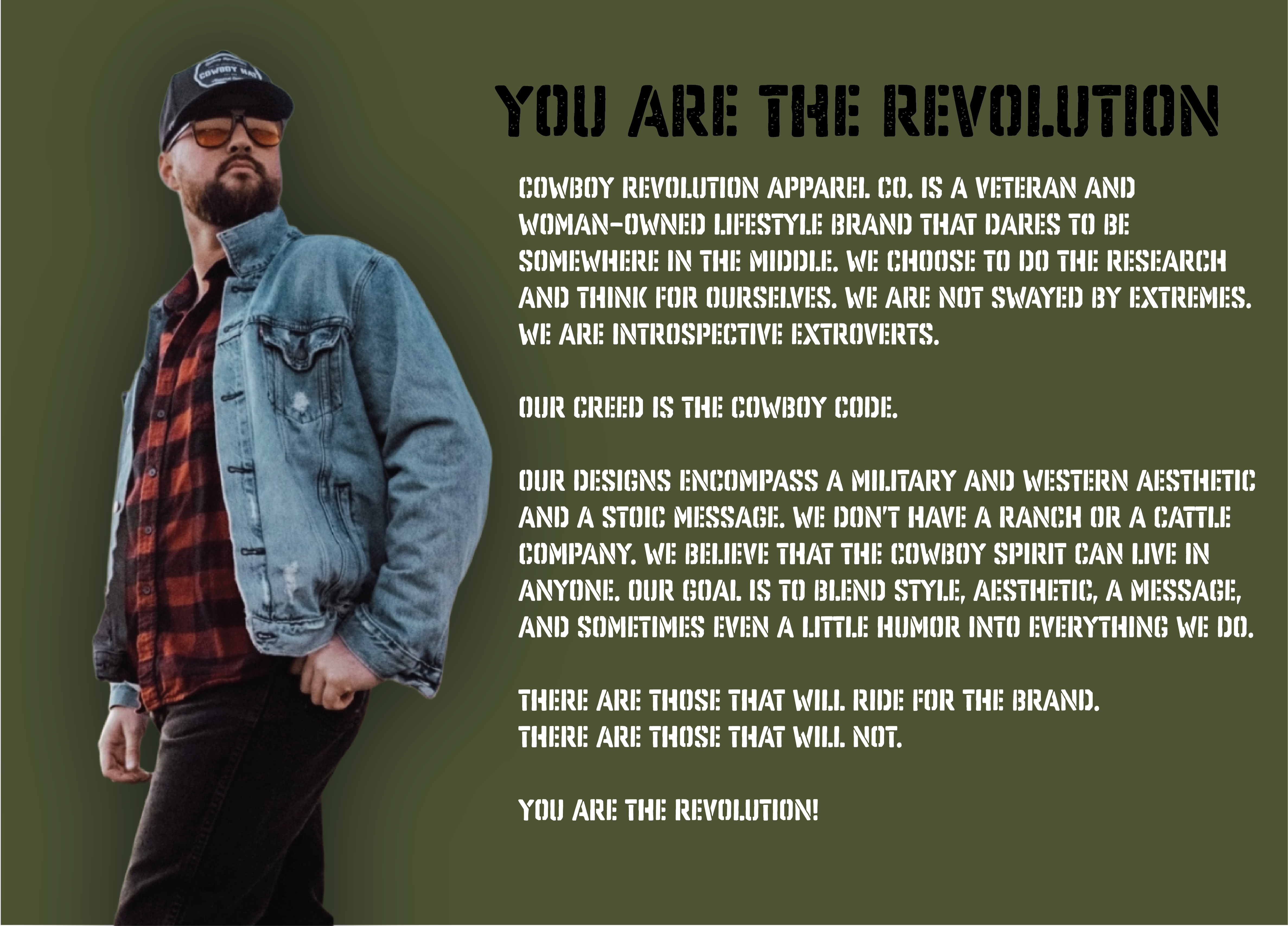 Join the Cowboy Revolution in deep greens and shadowed earth, and show the world you're built for the bayou and beyond.